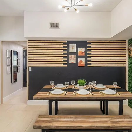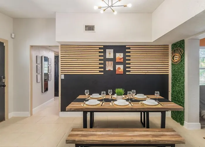 Die Villa Jacuzzi And Games Close To Dwtn Disney And Parks verfügt über eine voll ausgestattete Küchenzeile mit einem Herd und einem Geschirrspüler. Das Restaurant Denny's liegt circa 14 Minuten von der Unterkunft entfernt. Die Gäste können diese Unterkunft mit dem Auto vom Flughafen Orlando Executive in 10 Minuten erreichen.